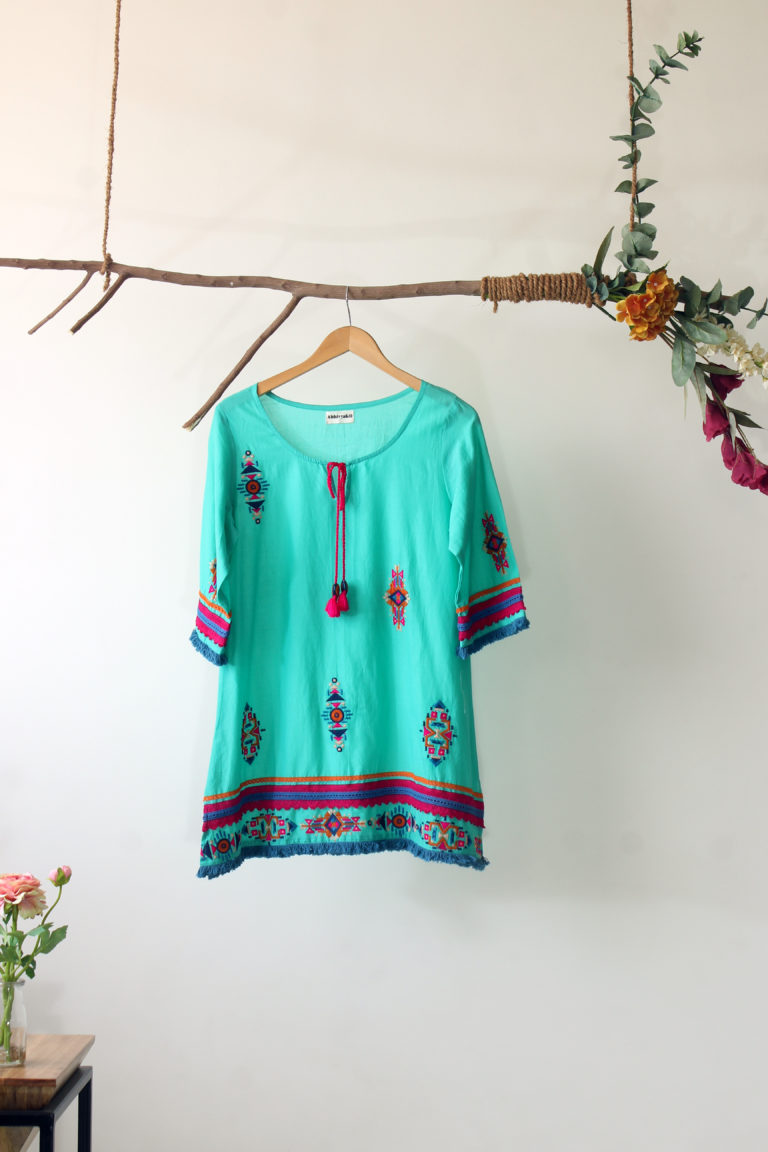 Our embellishment is anything that adds design interest to the piece. Use of Tassels, Sequins adds to the look of our garment.